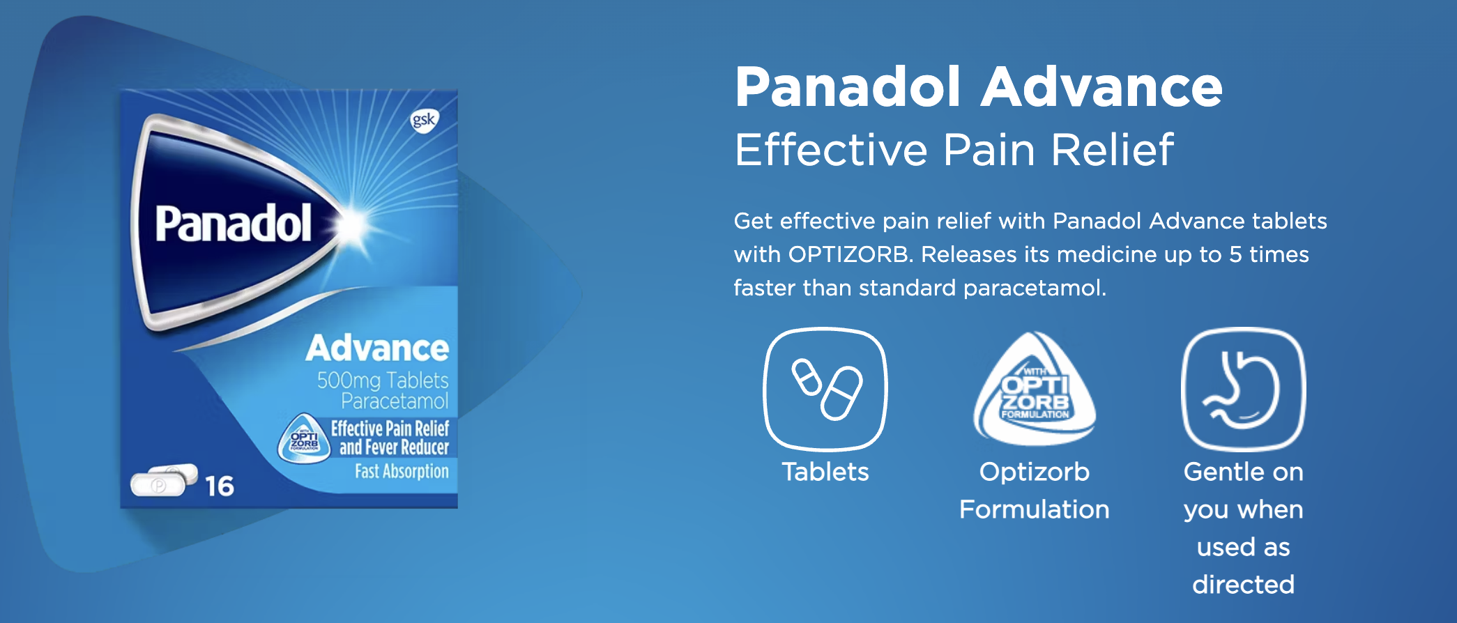 Panadol Extra Advance 500mg/65mg 16 Tablets